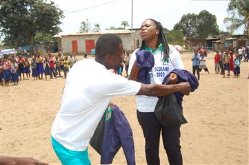 Prospection et remise de vêtements et vivres aux autochtones d'Ingabélé (Département de la Lékoumou)